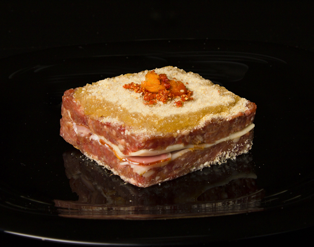 Confecionamos hambúrgueres na forma quadrada, com camadas